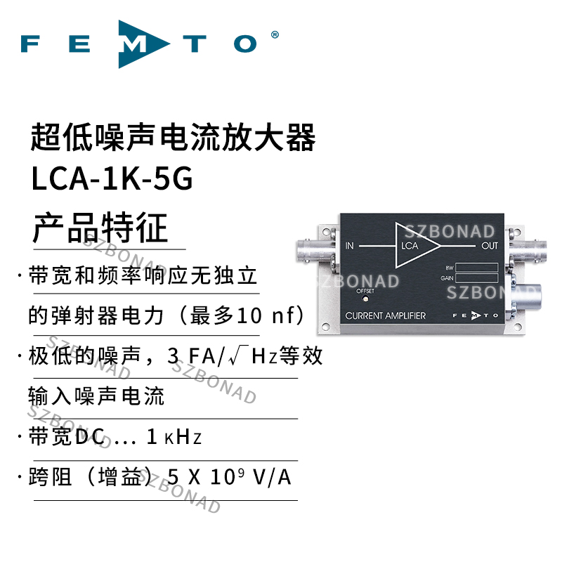 LCA-1K-5G是德國FEMTO公司生產(chǎn)的超低噪聲跨阻放大器?,適用于高精度電流信號檢測場景。