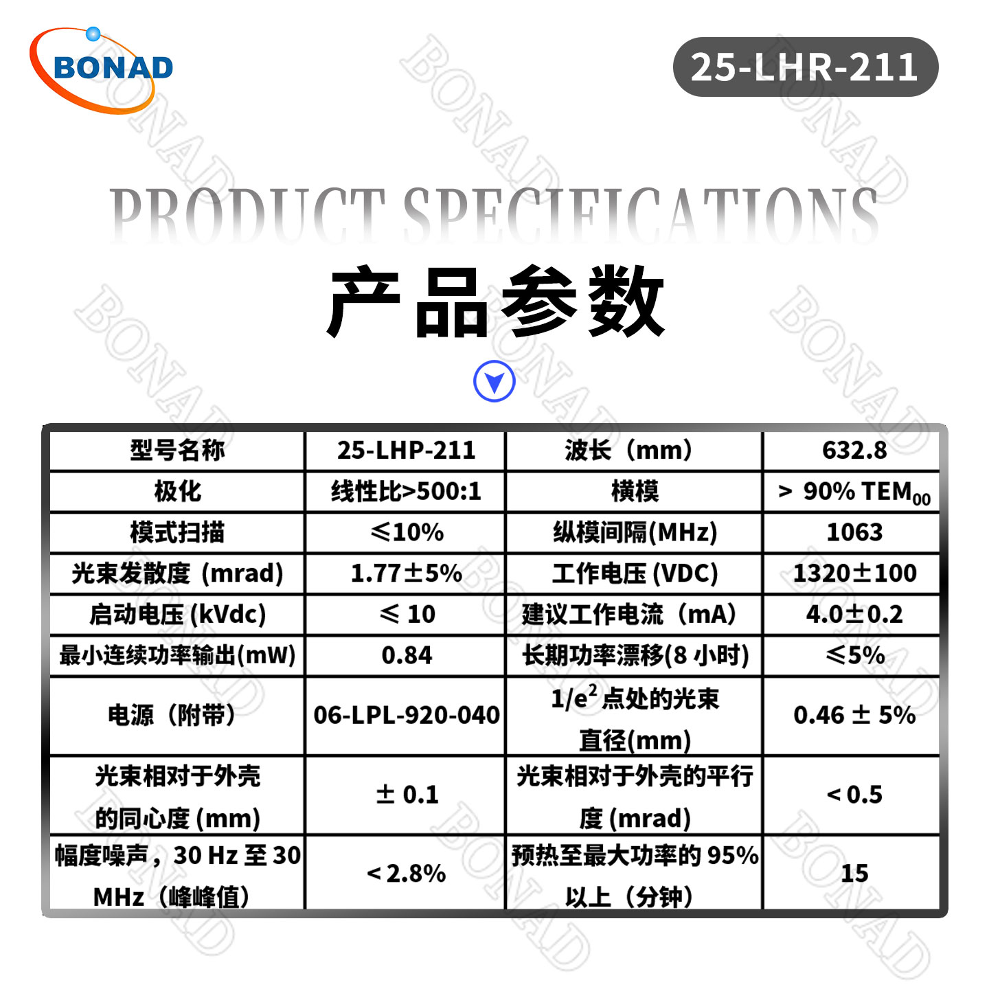 0.84mW小功率632.8 nm紅色氦氖激光系統25-LHP-211